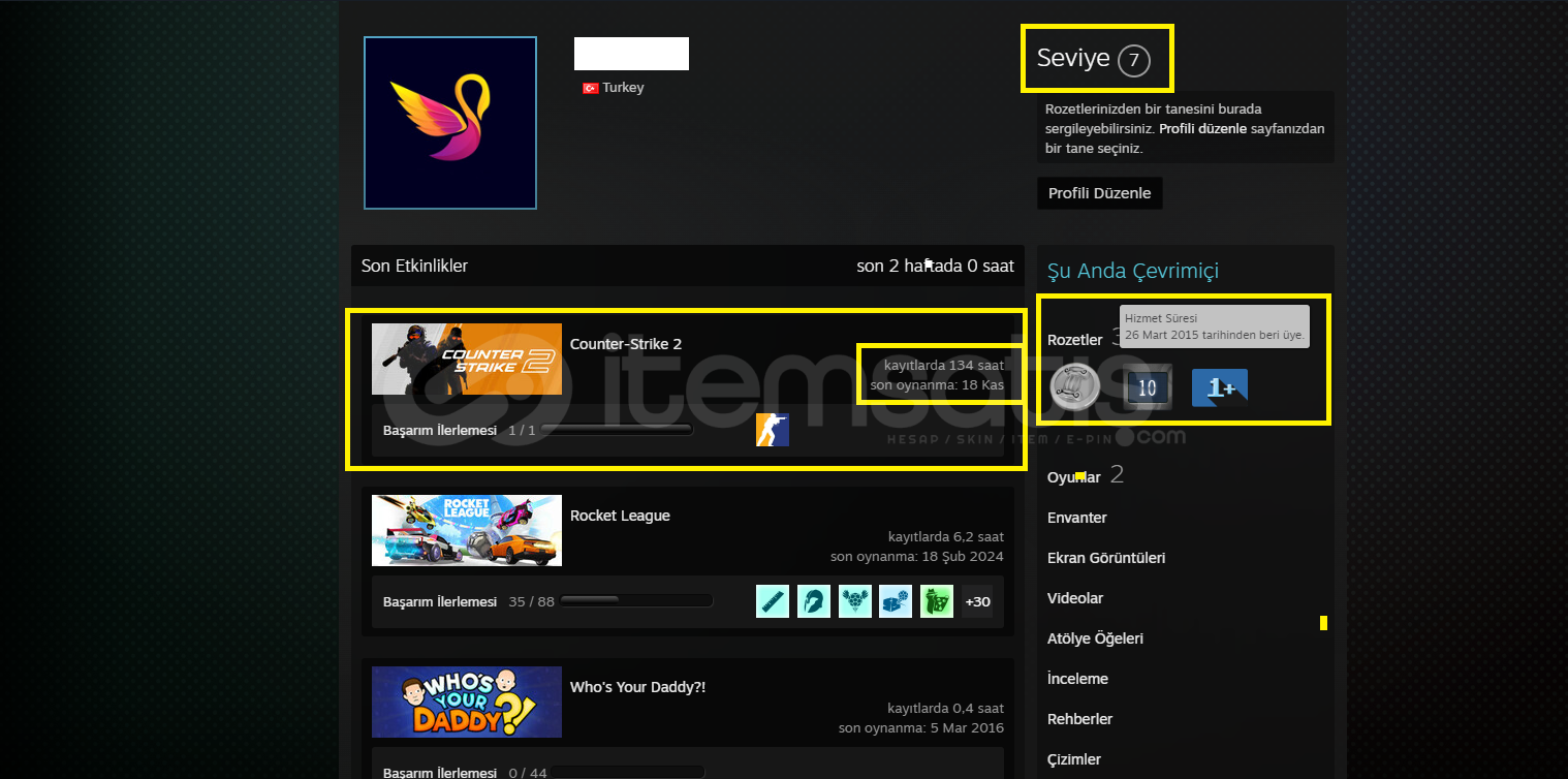 STEAM PROFİL SEVİYESİ : 7 SEVİYE