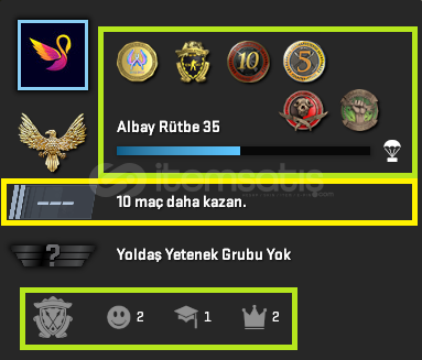 MADALYALAR : CS GO ROZETİ+5 YIL ROZETİ + SADAKAT ROZETİ+10 YIL JETONU+BREAKOUT OPERASYON JETONU + KAN TAZISI OPERASYON JETONU : 6 MADALYALI