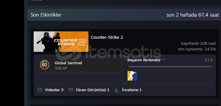 Hesap yaklaşık 1 aylık 108 saat cs2 var hesap seçkin durumda içinde bıcak ve eldiven hağriç çoğu silahta skin bulunuyor envanter değeri yaklaşık 25/30 dolar adasında rozet bulunmuyor.Herhangi bir yasaklama yok(vac ban/vac live) (satın alımdan önce sohbet üzerinden bilgi almak isterseniz yardımcı olurum)