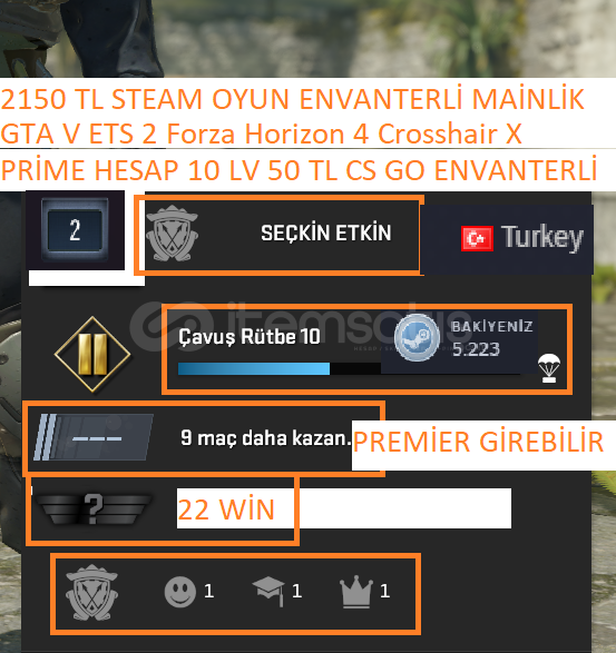 PRİME HESAP 10 LV GTA V ETS 2 Forza Horizon 4 2150 TL STEAM OYUN ENVANTERLİ MAİLLİ MAİNLİK HESAP ACCMADALAYA:PRİME HESAPWİN:REKABETCİ : WİN YOLDAŞ:22 WİNPRİME RANK :REKABETCİ:BELİRSİZGÜVEN FAKTÖRÜ:YEŞİLCS GO SEVİYE:10 LV PRİMİER GİREBİLİRSTEAM LV:2STEAM PUAN:5.223 İSTEDİĞİNİZ HAREKETLİ ALABİLİRSİNİZSTEAM BAKİ...