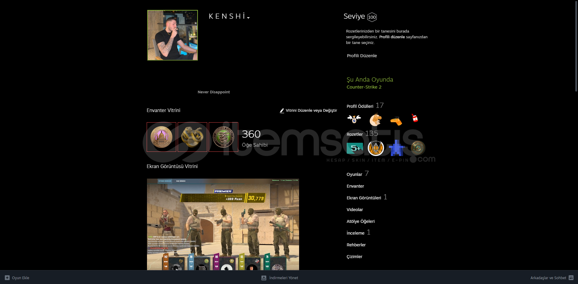 STEAM 100 LVL CS 2 30K SEÇKİN HESAP