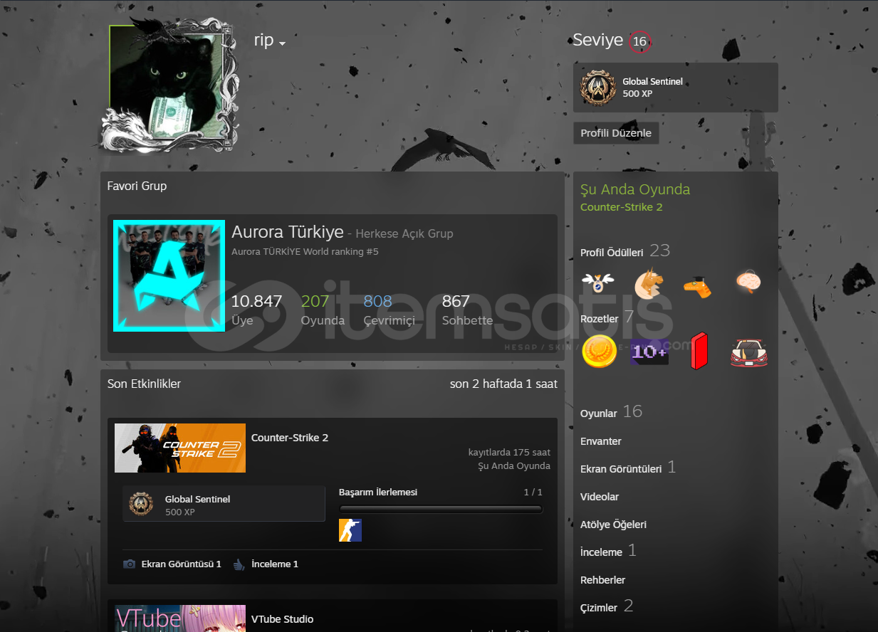 📦 HESAP BİLGİLERİ✉️ Mail Şifre Telefon Mobil Guard %100 değiştirilebilir🟢 Steam bakiyesi: $0.79🟢 Puan dükkanı: 6.499 Puan🟢 Oynama Süresi: 175 Saat🟢 CS2 Seviyesi: 19🟢 Prime Durumu: Seçkin Prime🟢 Övgü sayısı: 4.950🟢 Profil yorumu: 1.270⚠️ Görseldki skinler olmadan teslim edilecektir⚠️ Steam ...