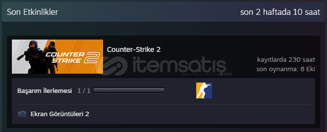 Pazarlık yok mesaj atmayın hızlı teslim ederim.Alsat yapan biri değilim kendi kişisel hesabım ve maddi durumlar yüzünden bilgisayarımı sattığım için boşa düştü.hesapta 230 saat oynama mevcut.Global Offensive Rozeti5 Yıllık Tecrübe JetonuSADAKAT ROZETİ31 aralık 2016 tarihinde açılan hesap.hiç ban yemedi. friendly fire yapılmadı 30 dk bile ban yemed...