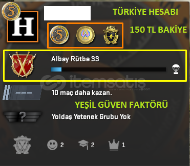 TR HESAP+150 TL BAKİYE+3 MADALYA 180 SAAT