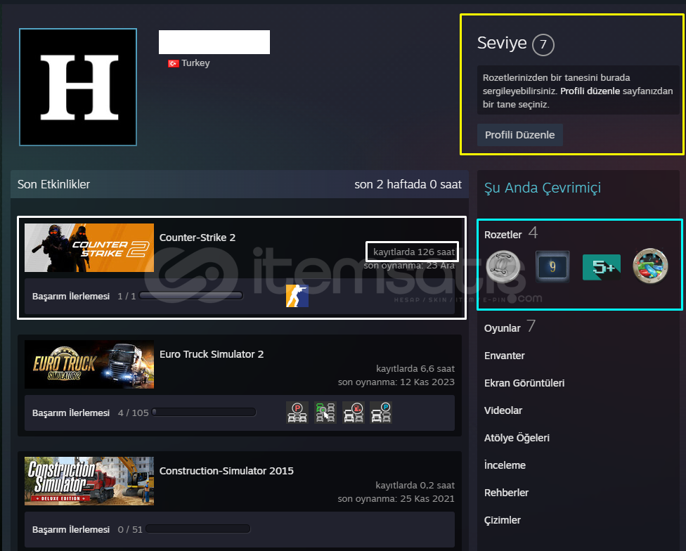 • STEAM PROFİL SEVİYESİ : 7 SEVİYE