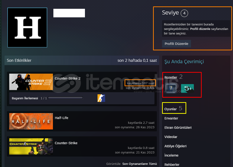 MADALYALAR : CS GO ROZETİ+SADAKAT ROZETİ + 5 YIL ROZETİ : 3 MADALYALI