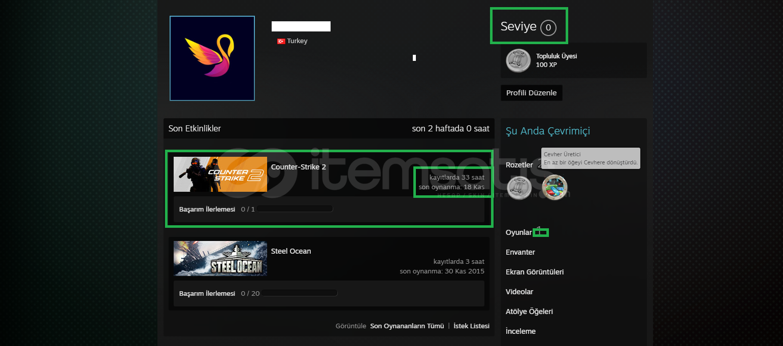 STEAM PROFİL SEVİYESİ : 0 SEVİYE