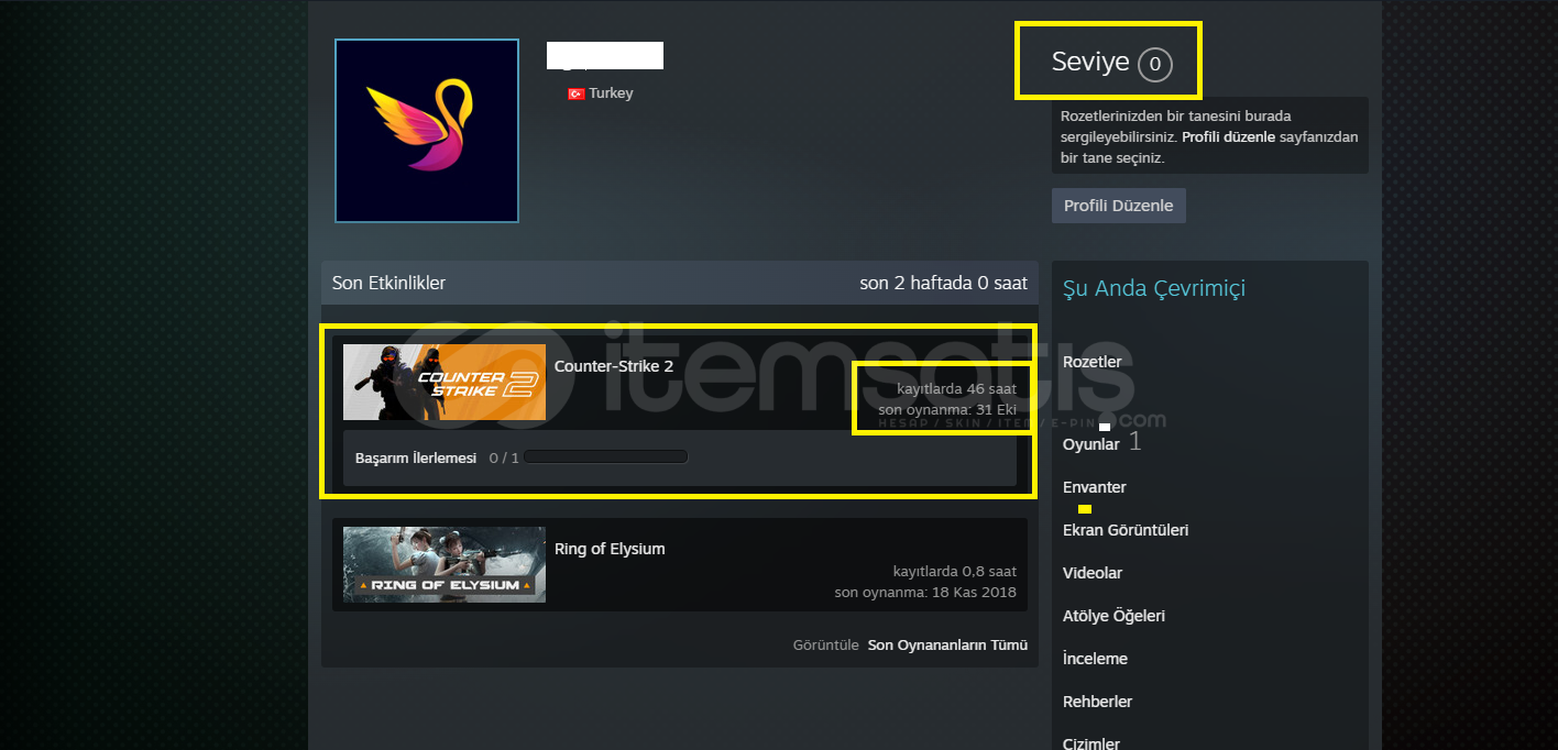 STEAM PROFİL SEVİYESİ : 0 SEVİYE