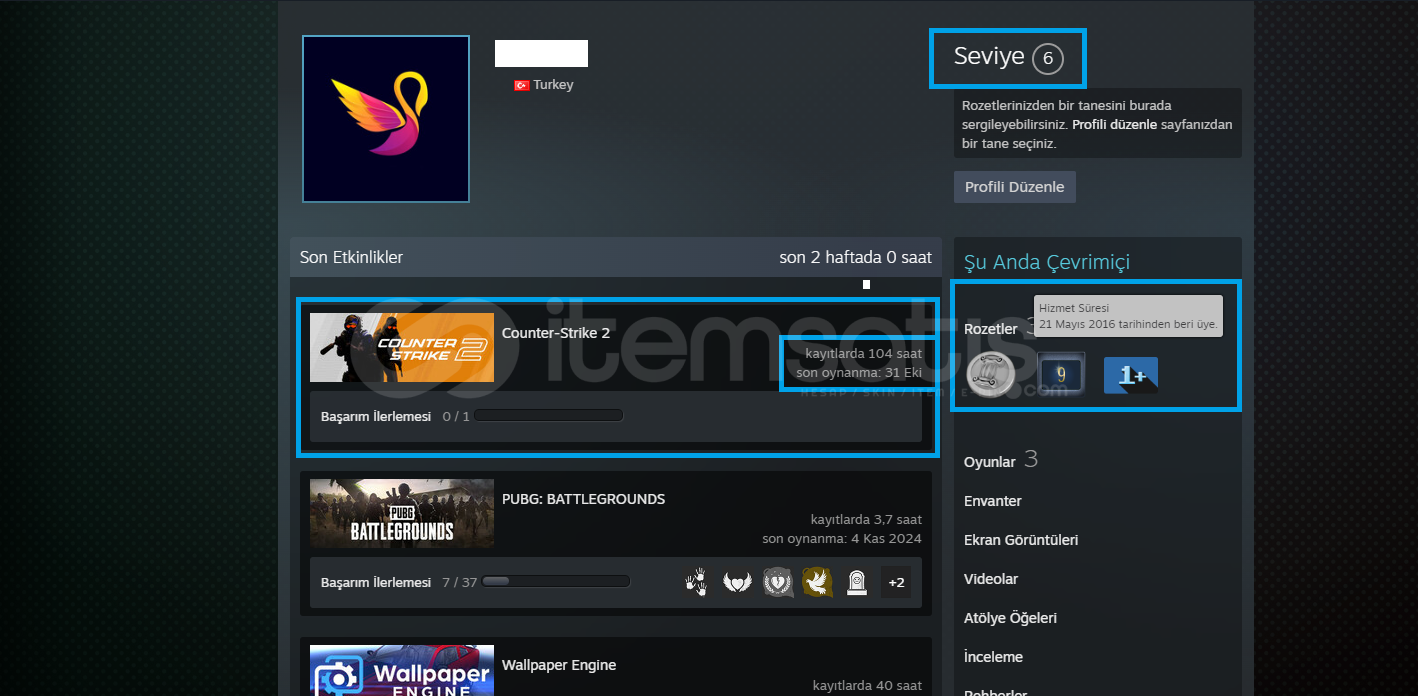STEAM PROFİL SEVİYESİ : 6 SEVİYE