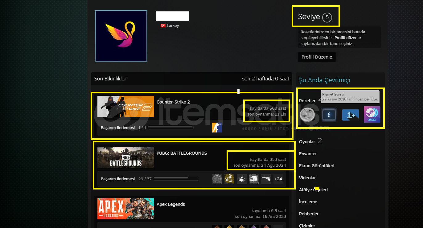 STEAM PROFİL SEVİYESİ : 5 SEVİYE
