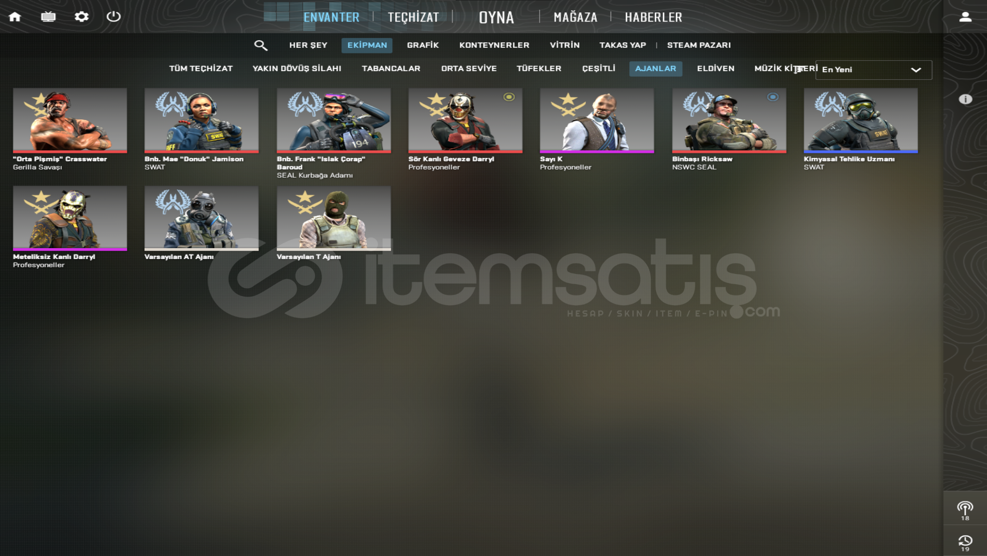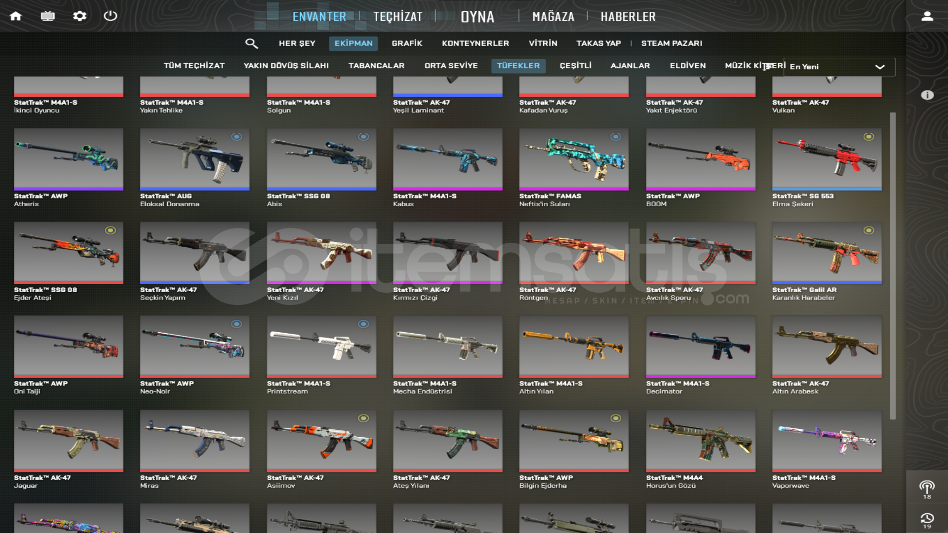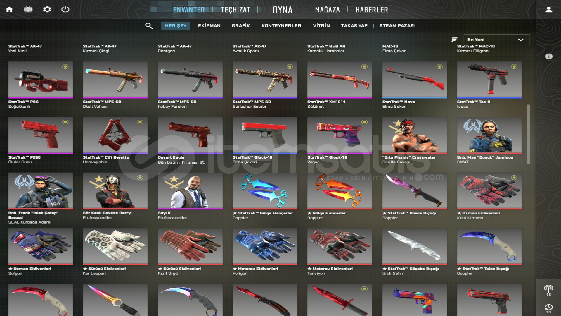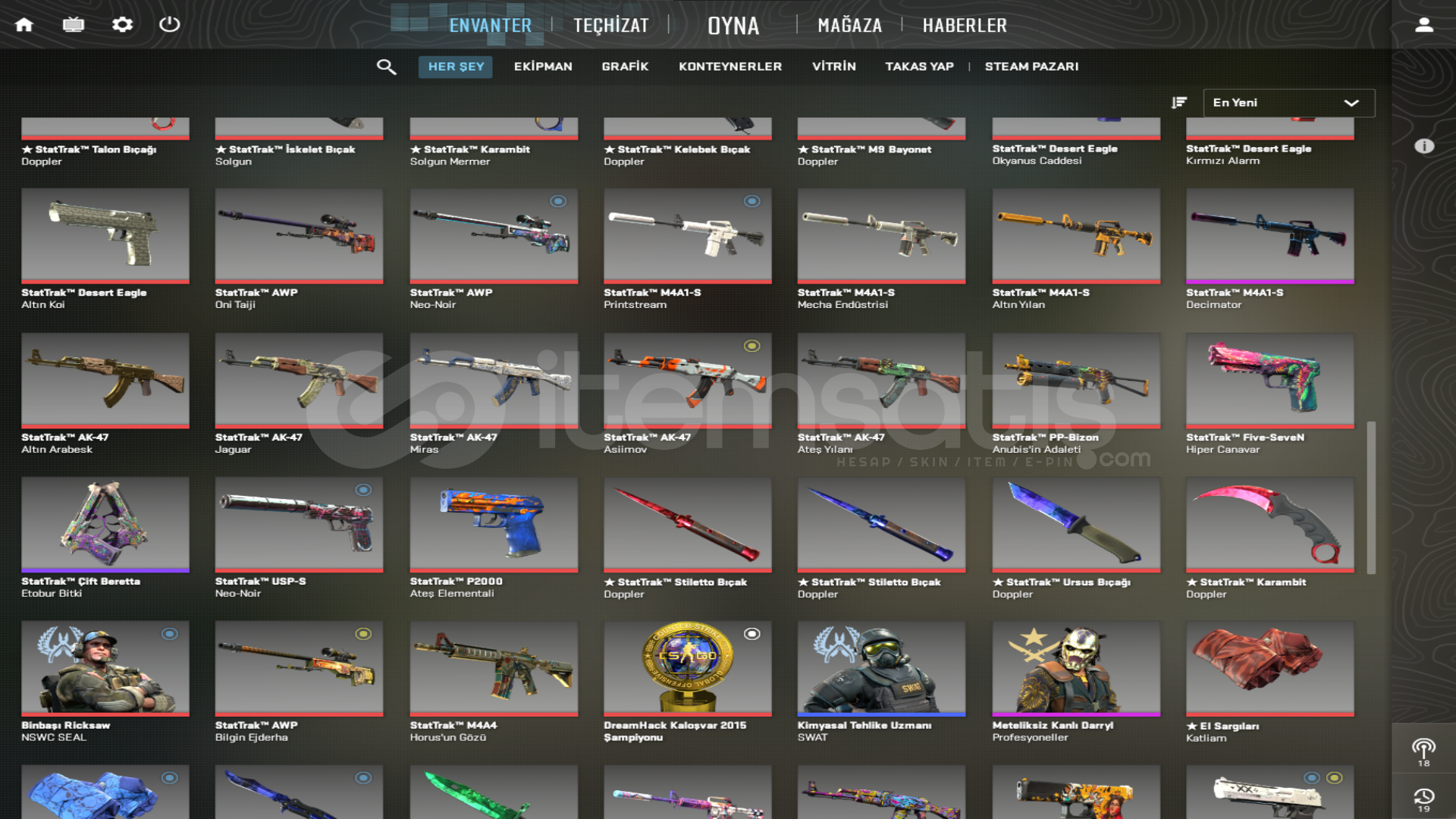 GAYET UCUZA SATIŞTADIR VE HESAP GÖRSELDEKİ GİBİ DOP DOLUDUR !! Dragon Lore AWP - Asimov AK-47 - Profesyonel Karakterler - 2 Adet EL SARGISI - 5 TANE güzel ELDİVEN - 16 ADET DEĞERLİ BIÇAK - 15 ADET DEĞERLİ VE GÜZEL AK-47 DESENİ - StatTrak PRİNTSTREAM DESERT EAGLE - 2 ADET DEĞERLİ GLOCK-18 DESENİ ve HESAPTA SEÇKİN AÇIKTIR MAİL DEĞİŞTİRİLEBİLİR HESAP...