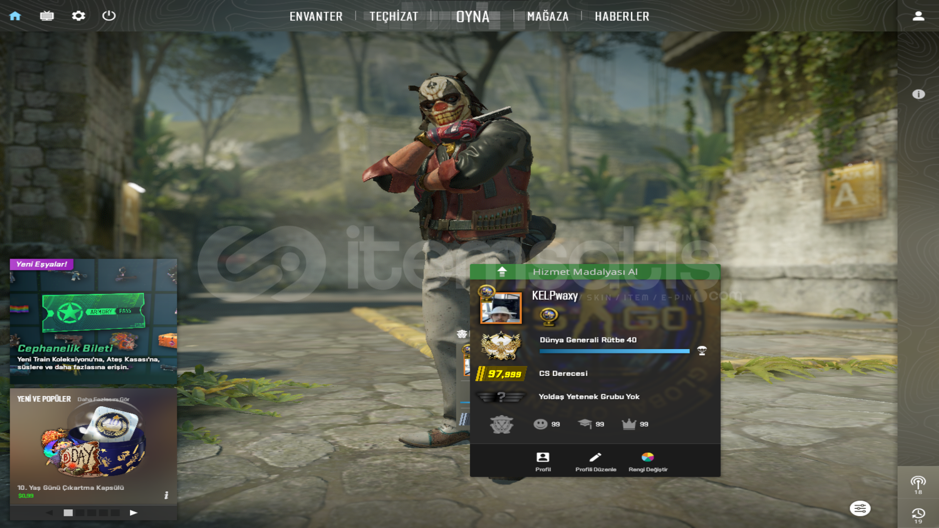 GAYET UCUZA SATIŞTADIR VE HESAP GÖRSELDEKİ GİBİ DOP DOLUDUR !! Dragon Lore AWP - Asimov AK-47 - Profesyonel Karakterler - 2 Adet EL SARGISI - 5 TANE güzel ELDİVEN - 16 ADET DEĞERLİ BIÇAK - 15 ADET DEĞERLİ VE GÜZEL AK-47 DESENİ - StatTrak PRİNTSTREAM DESERT EAGLE - 2 ADET DEĞERLİ GLOCK-18 DESENİ ve HESAPTA SEÇKİN AÇIKTIR MAİL DEĞİŞTİRİLEBİLİR HESAP RANKI GLOBAL ELİTE'DİR 97.999 PUANDADIR.