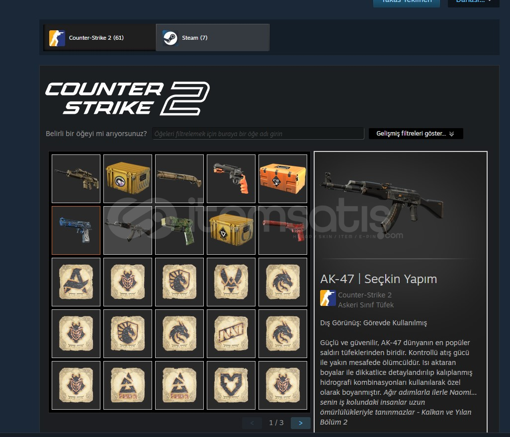 Hesap prime yoldaş rankı nova hesabın bütün bilgileri değişir içinde G.O.T hariç güzel oyunlar var alana şimdiden hayırlı olun kaliteli hesap.Envanter baya dolu tam olarak 14.5 dolar envanterin fiyatı stickırlar harici.Yine yazın pazarlık sünnettir bişeyler yaparız.Skinlerde taakas bana falanda mevcut değildir bütün skinler taakaslanabilir