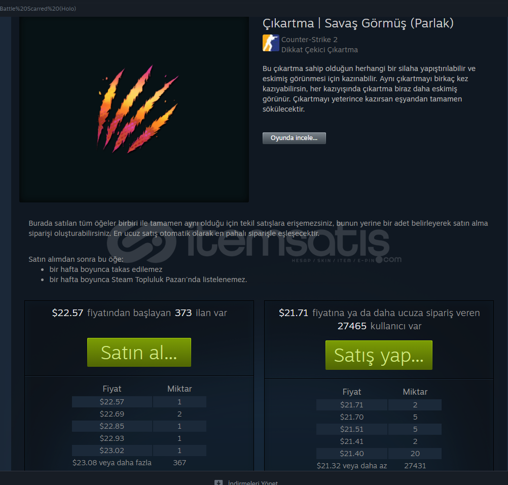 • size skini verdikten sonra skini 7 gün boyunca tradeleyemez ve satışını yapamazsınız.