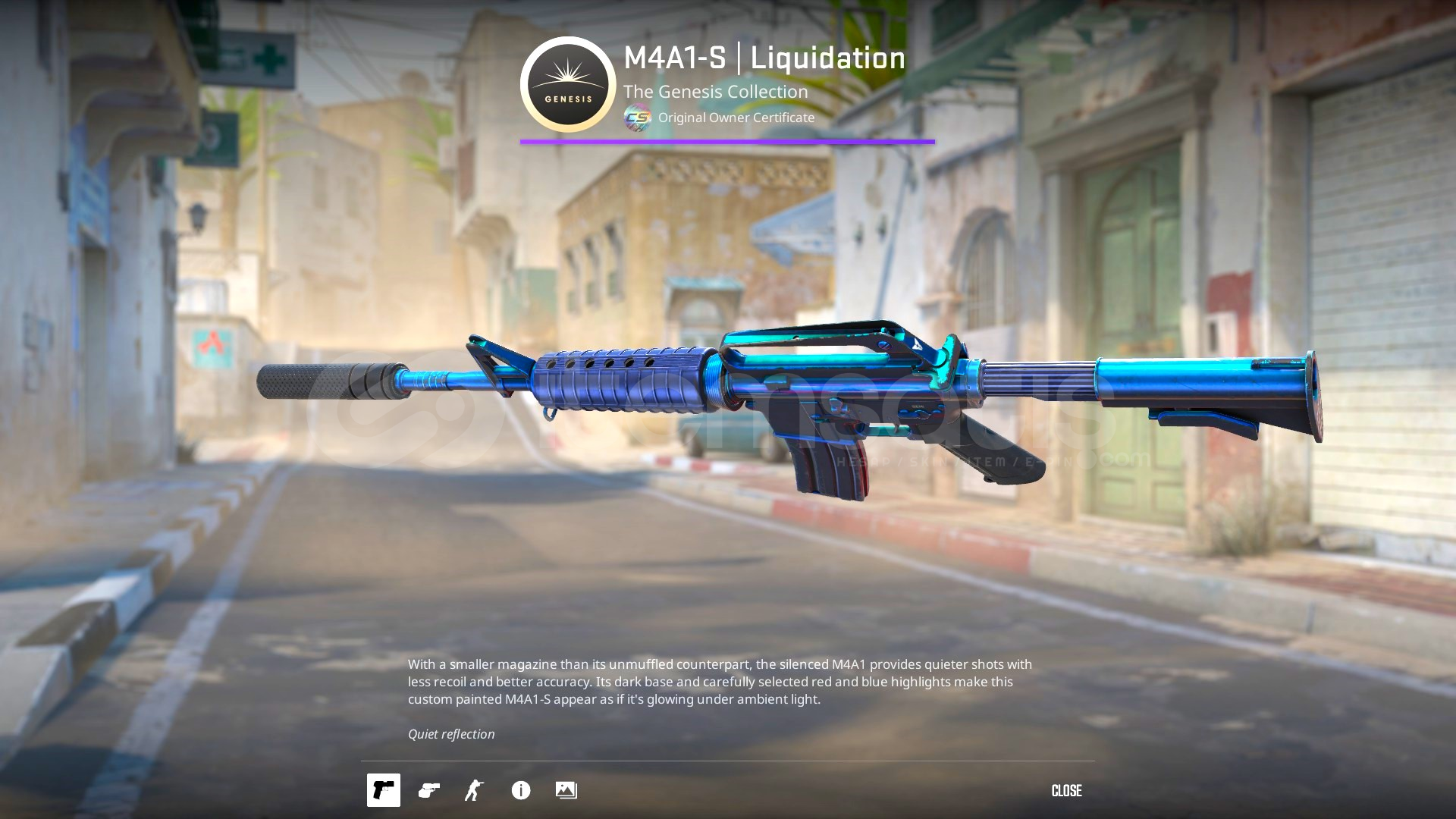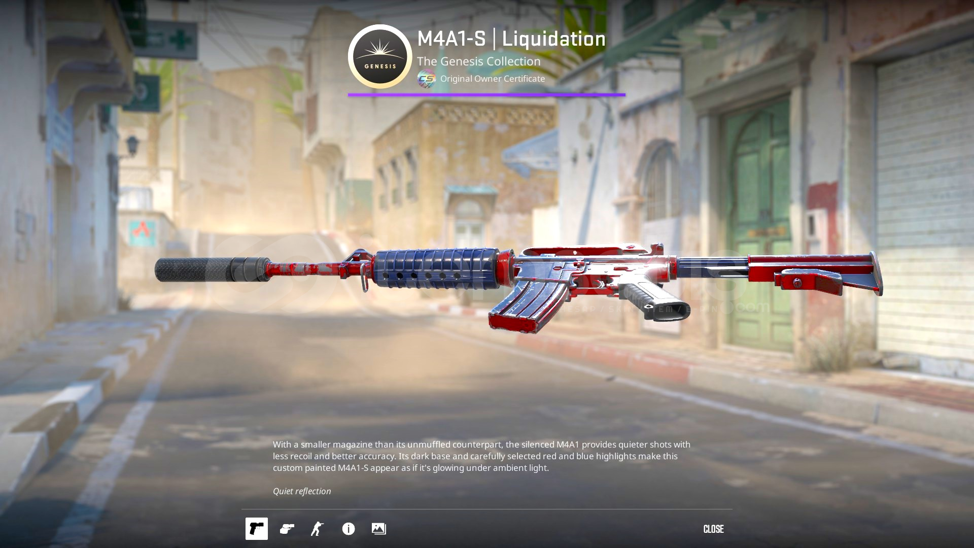 Dış Görünüş: Eskimiş Susturuculu M4A1, susturucu çıkarılmış haline nazaran daha küçük bir şarjör haznesine sahip olmakla beraber daha az geri tepme ve daha iyi kesinlik ile daha sessiz atışlar sağlar. Its dark base and carefully selected red and blue highlights make this custom painted M4A1-S appear as if it's glowing under ambient light. Quiet reflection The Genesis Collection ...