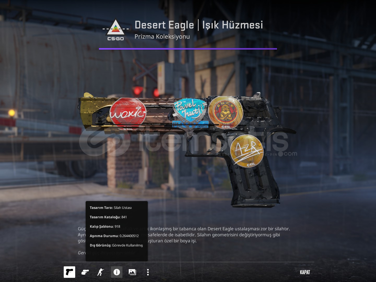 Desert Eagle | Işık HüzmesiDış Görünüş: Görevde Kullanılmış (FT)ÜZERİNDEKİ ÇIKARTMALAR (4):-AZR | Katowice 2019 $0.54ENCE | Katowice 2019 $0.72hutji | Krakov 2017 $3.00woxic | Katowice 2019 $0.83-Toplam: $5.09 ✅ = 214,97 TL/FİYATLAR SÜREKLİ ARTTIGI İÇİN ORTALAMA 5 DOLAR DİYEBİLİRİZ.-+440 BAŞARILI İŞLEM GÜVENCESİ.İlanı...