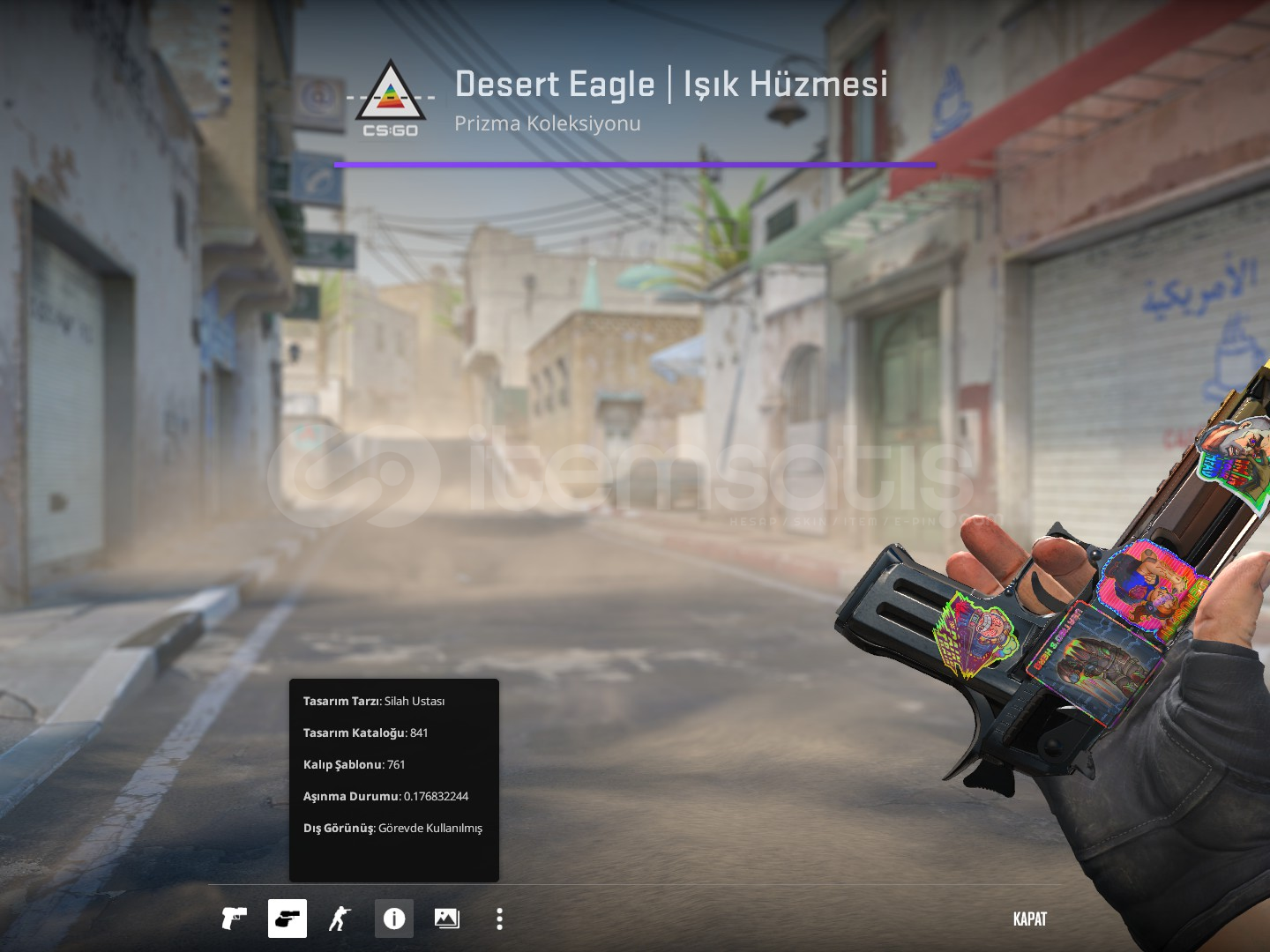 Desert Eagle | Işık HüzmesiSınırlı Tabanca-Gerekli güç ihtiyacı ayrı satılır-Dış Görünüş: Görevde Kullanılmış---------------------------------ÜZERİNDEKİ ÇIKARTMALAR (2):Acı Treni (Holo) $0.54 Vertigo'nun Kahramanı (Holo) $0.82İmha Et (Holo) $0.55Akıl Oyunları (Holo) $0.42TOPLAM: $2.33 = 98,75 TL---------------------------------+450 BA&#...