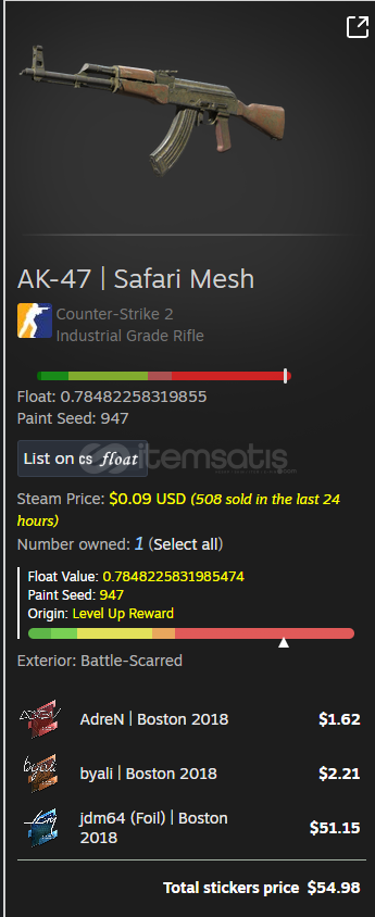 AK-47 | Safari Mesh (Battle-Scarred)Sticker | AdreN | Boston 2018 Sticker | jdm64 (Foil) | Boston 2018Sticker | byali | Boston 2018