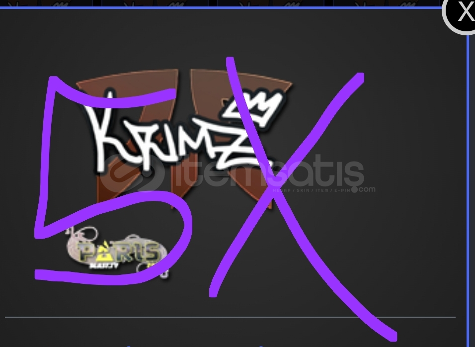 Tür : ÇıkartmaNitelik : NormalNadirlik : Yüksek SınıfÇıkartma Türü : Oyuncu İmzasıTurnuva : BLAST.tv Paris 2023Takım : FnaticProfesyonel Oyuncu : KRIMZ (Lars Freddy Johansson)Çıkartma Koleksiyonu : Paris 2023 Oyuncu İmzalarıBu çıkartma sahip olduğun herhangi bir silaha yapıştırılabilir ve eskimiş görünmesi için kazınabilir. Aynı ç&...