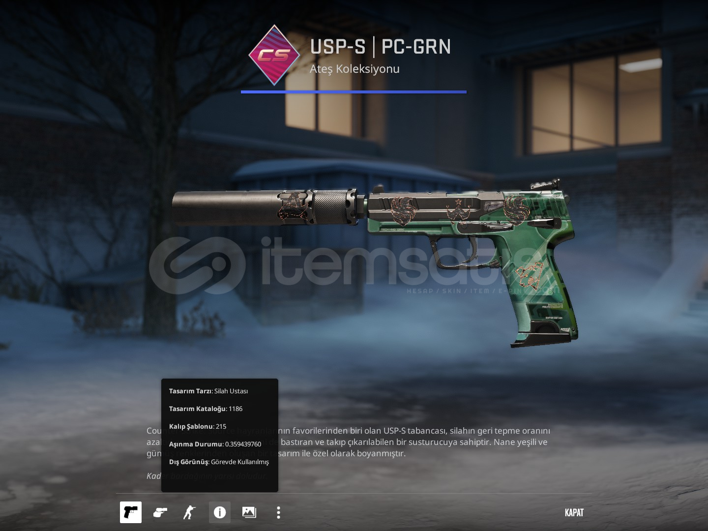 USP-S | PC-GRN / Dış Görünüş: Görevde Kullanılmış (FT)