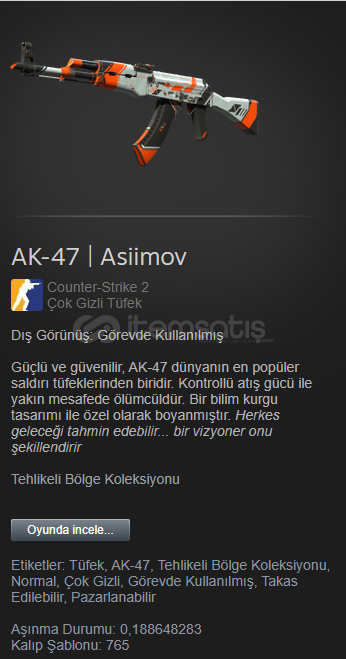 Float: 0.18TRADE İLE GÖNDERİLİR!Steam hesabınızın trade banı olmamalıdır.Steam hesabınızın envanter gizliliği HERKESE AÇIK Olmalıdır.Daha fazla skin için ilanlarıma göz atabilirsiniz.Aktif olmamı beklemeden satın alabilirsiniz.Otomatik teslimat değildir. TESLİMAT EN GEÇ 12 SAAT İÇİNDE YAPILIR.