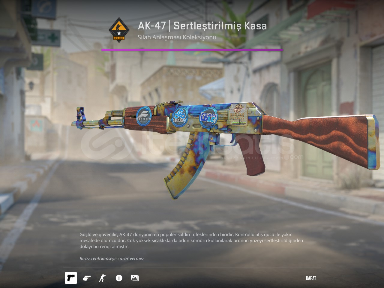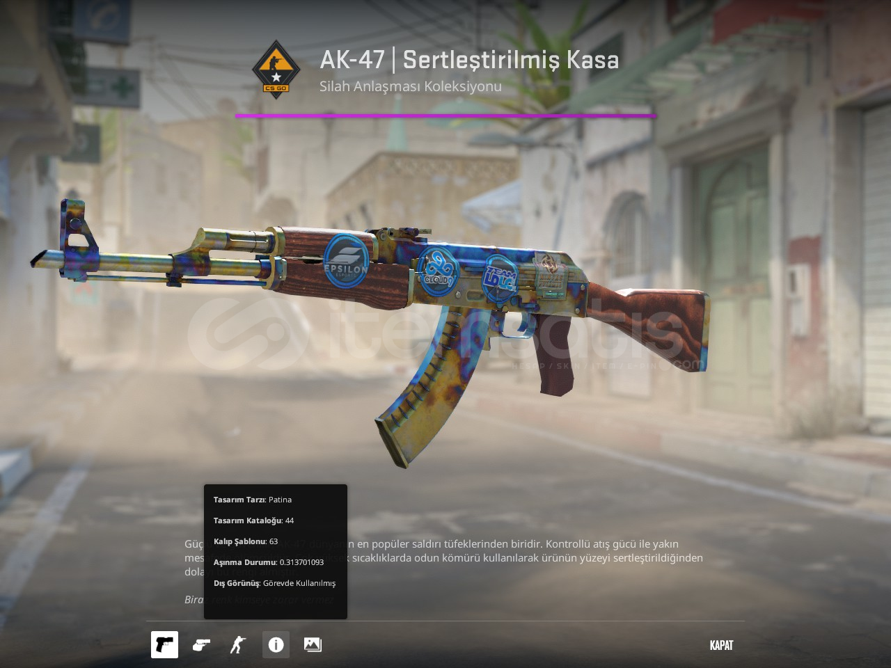Üzerindeki çıkartmalar: Ninjas in Pyjamas (Holo) | DreamH4ck 2014 Team LDLC.com | Köln 2014. Cloud9 | Köln 2014. Epsilon eSports | Köln 2014Blue gem oranı gayet güzel mavi tetik ak nin üzeri de güzel mavilikte aynı gün teslimat garantisi