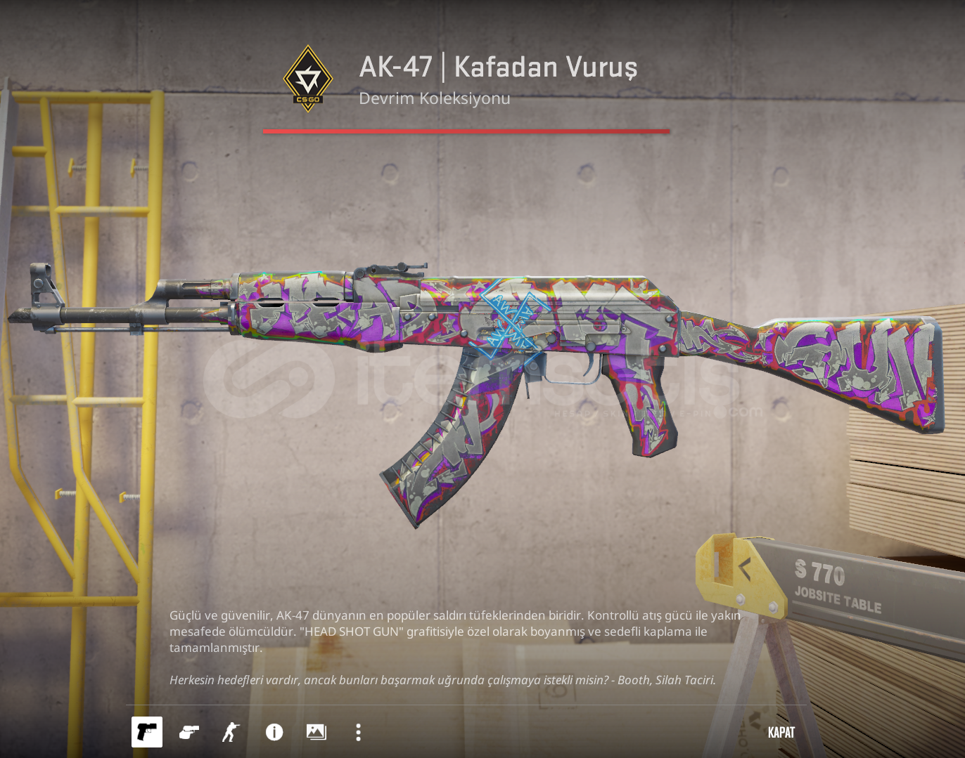 Steam Trade Linkini Vermeniz Yeterlidir.Satın Almak İçin Mesaj Atmanıza Gerek Yoktur.Aktif Olmasak Bile Satın Alım Yapabilirsiniz En Kısa Sürede Teslim Edilecektir.Steam Envanterinizin Herkese Açık Olmalıdır.Trade Banınız Varsa İade Sağlanır.Daha Fazla Skin İçin Profilime Bakabilirsiniz.Sorularınız İçin Çekinmeden Mesaj Atabilirsiniz.
