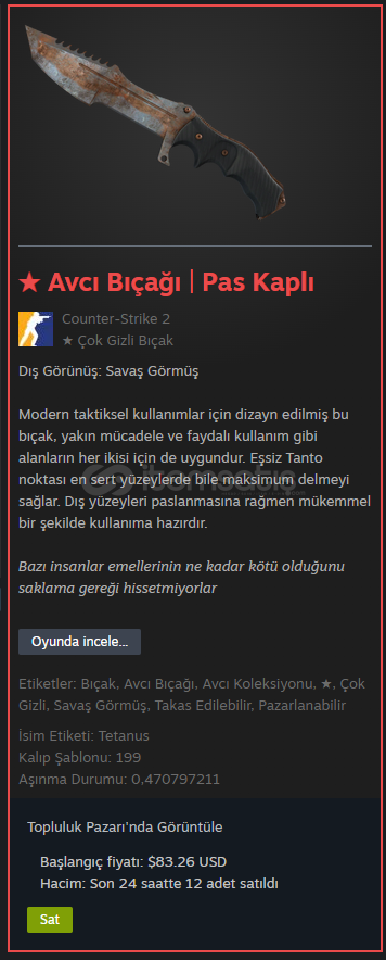 AVCI BIÇAĞIİsim Etiketi: TetanusKalıp Şablonu: 199Aşınma Durumu: 0,470797211