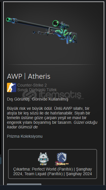AWP | AtherisDüşük Float. Steam fiyatından daha ucuzdur. bence böyle almanız sizin adınıza da sevindirici olacaktır.