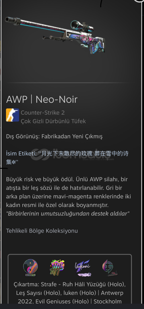 Awp Neo-Noir Fabrikadan yeni çıkmış 40 dolarlık sticker craftli harika floatli awp