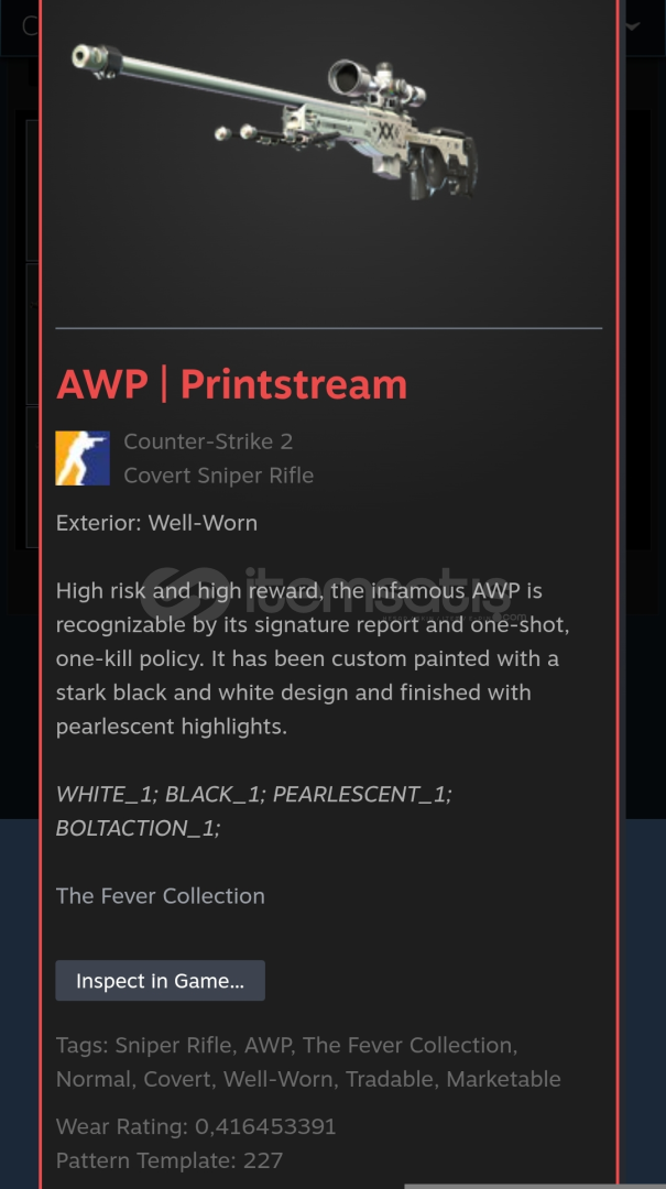 AWP PRİNTSTREAMESKİMİŞFLOAT 0.41664453391