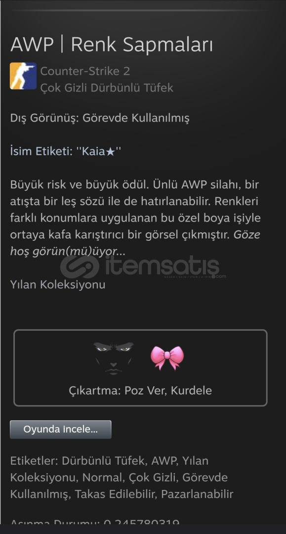 ✅HIZLI TESLİMAT✅%100 MÜŞTERİ MEMNUNİYETİ💎UYGUN FİYAT GARANTİSİ💎✴️Steam Profilinizi herkese açık olarak ayarlamayı unutmayınız. İlanı satın aldıktan sonra bize Tradelinkinizi gönderiniz. En kısa sürede Teslimat gerçekleşecektir.✅CS2 Skinlerinizi en uygun fiyatlara sizlere sunuyoruz.✅Müşteri memnuniyeti birinci ö...
