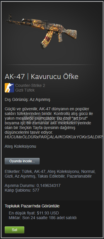 Az aşınmış. AK-47 | Kavurucu Öfke.
