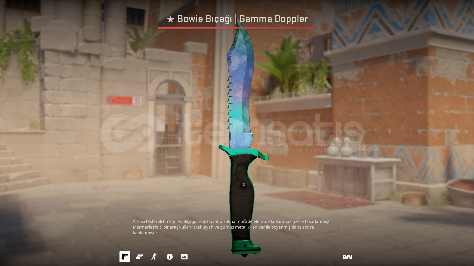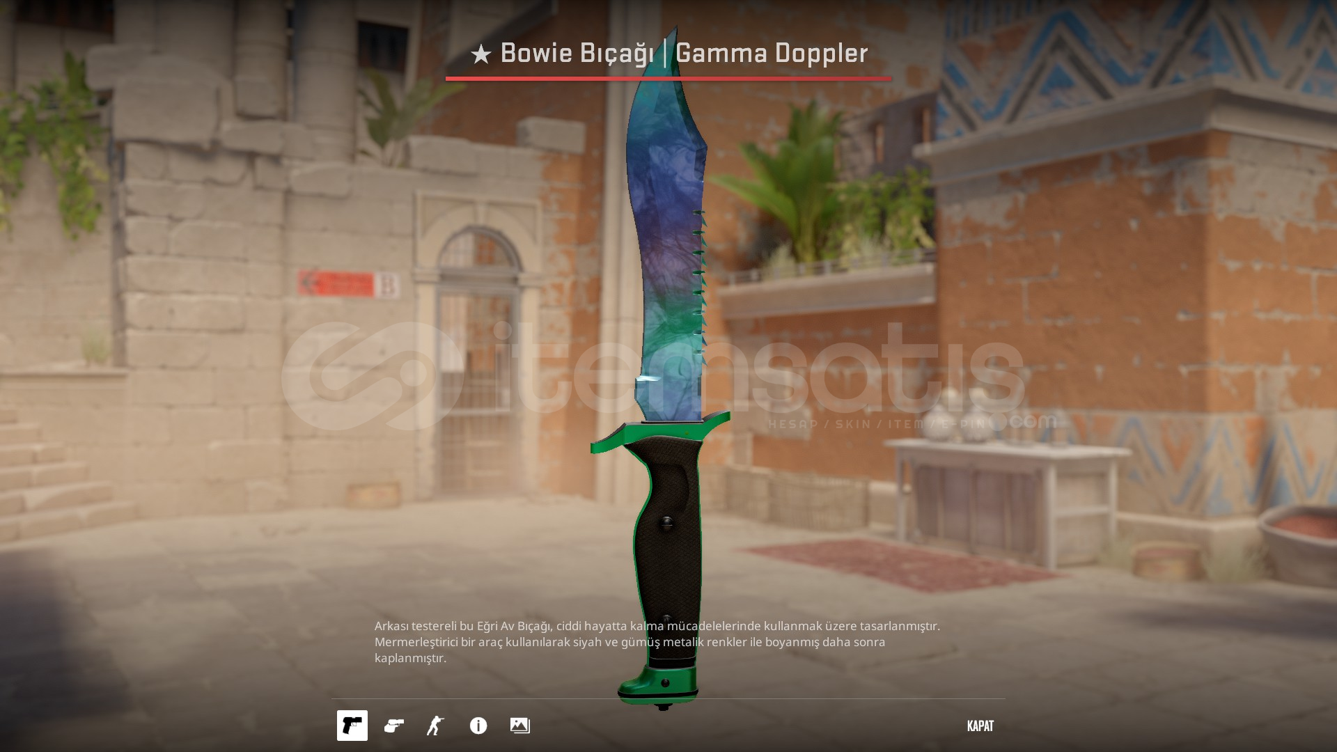 Bowie Bıçağı Gamma DopplerFabrikadan yeni çıkmış Aşınma Durumu: 0,035771236Steam Fiyatının altına ilanda