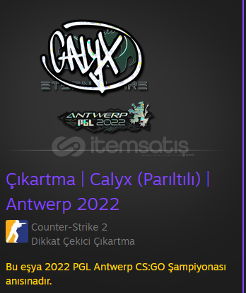 Bu parıltılı çıkartma Eternal Fire takımında oynayan ve PGL Antwerp 2022 Major Şampiyonası'na katılan profesyonel oyuncu Buğra Arkın tarafından imzalanEN HIZLI ŞEKİLDE TESLİMAT YAPMAYA ÇALIŞIRIM