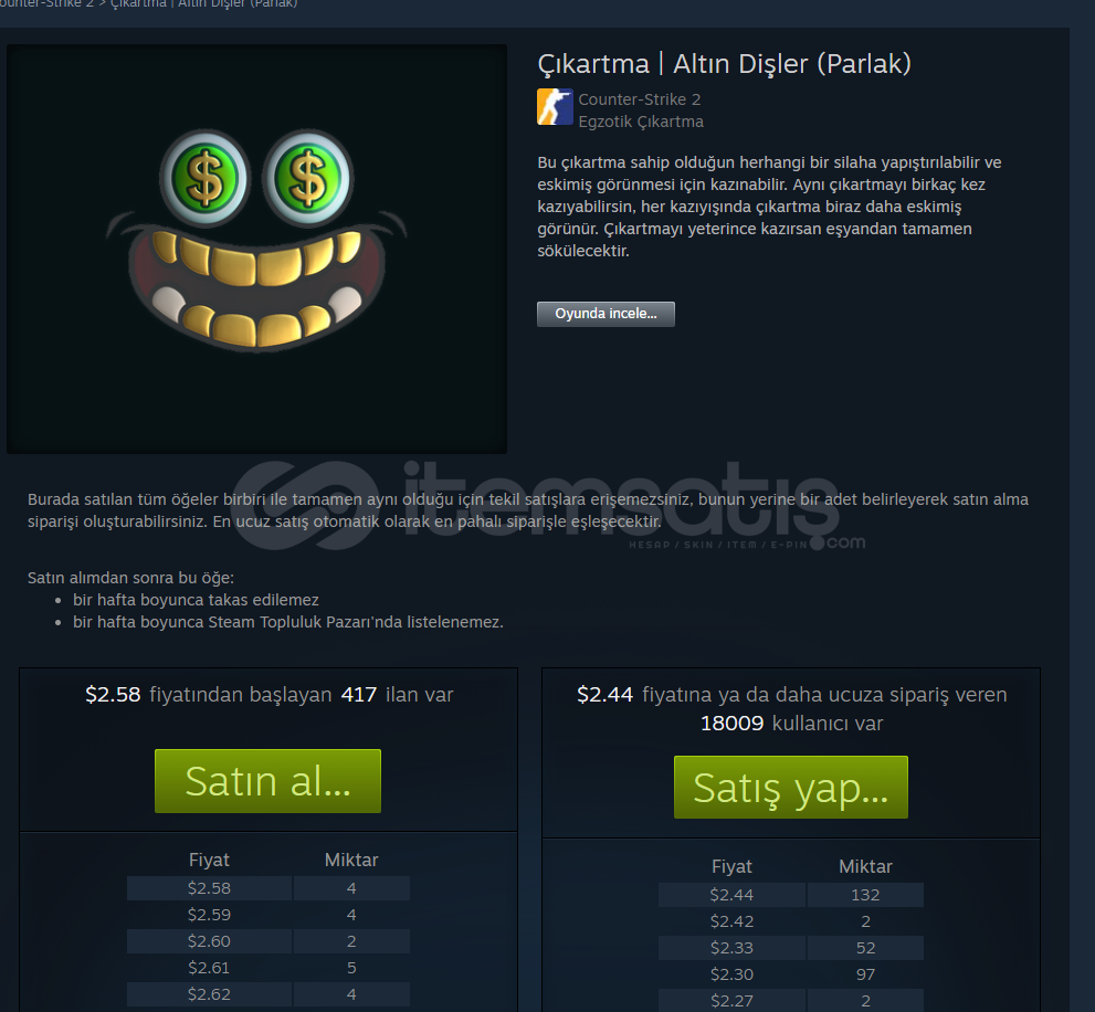 • Steam hesabınızda trade banı olmamalıdır.