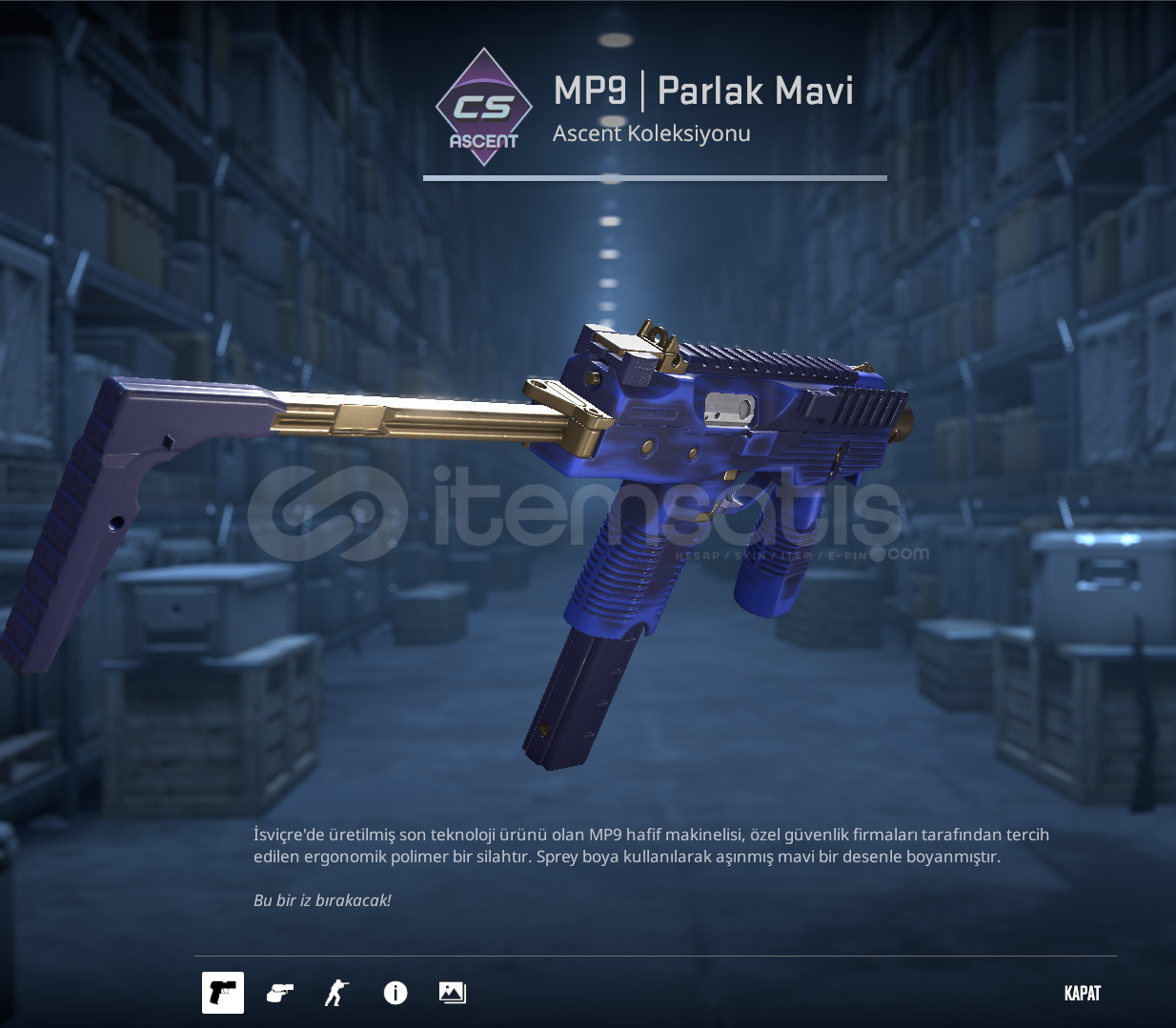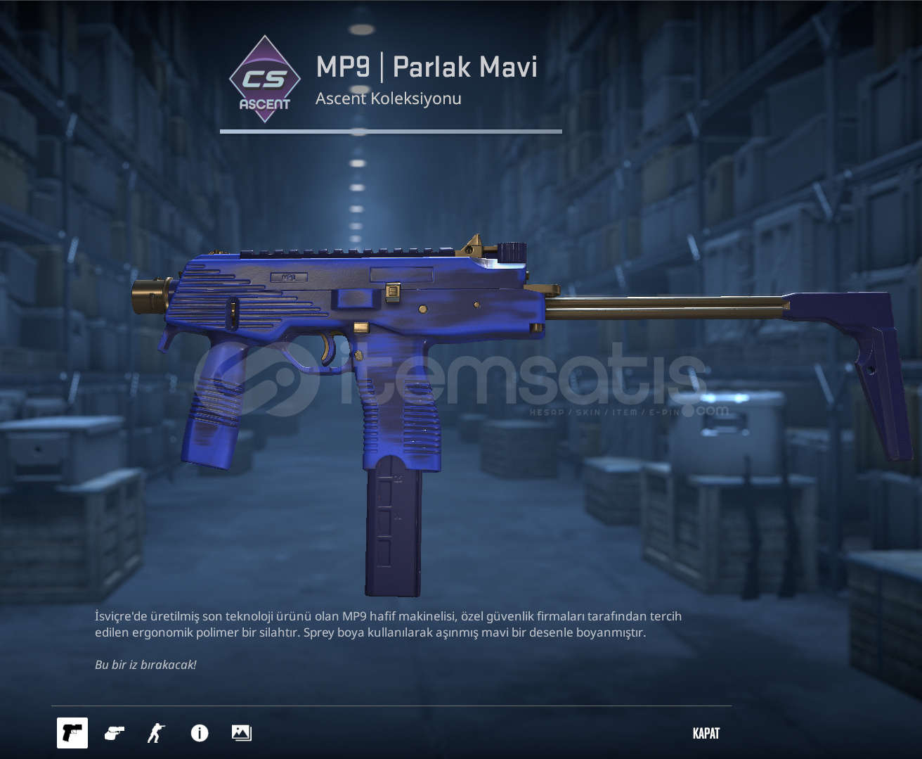 -MP9 | Parlak Mavi-Aşırı temiz-Düşük floatlı mp-9-Mw -Anında teslimat-0.07 float