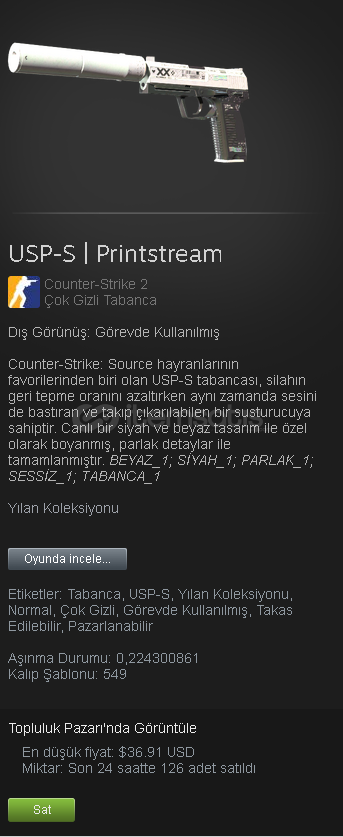 SATIN ALMADAN ÖNCE MUTLAKA OKUYUNUZ!1- STEAM HESABINIZIN TRADE BANININ KESİNLİKLE OLMAMASI GEREKMEKTEDİR.2- STEAM HESABINIZIN ENVANTER GİZLİLİĞİ HERKESE AÇIK OLMASI GEREKMEKTEDİR.AKTİF OLMADIĞIM ZAMANLARDA BİLE GÖNÜL RAHATLIĞIYLA SATIN ALABİLİRSİNİZ.SATIN ALDIKTAN SONRA;1- TRADE URL'NİZİ İLETİNİZ.2- STEAM ENVANTER GİZLİLİĞİNİZ...