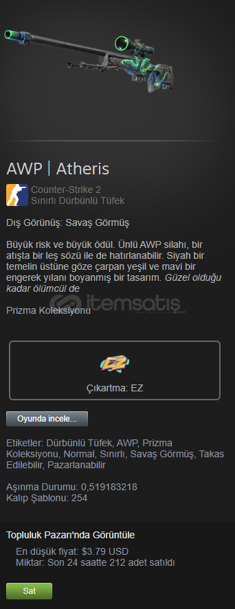CSGO AWP Atheris silah uygun fiyatlı floatı az olan silah