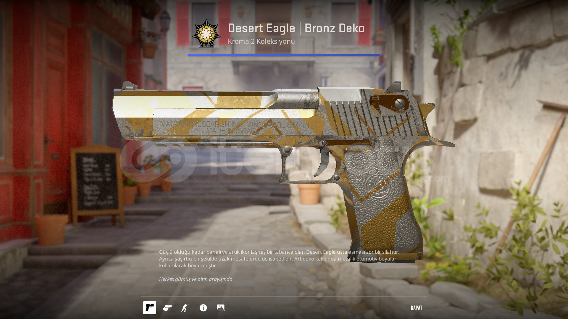 Desert Eagle | Bronz Dekoİlan resmi temsilidir(stokların içindeki skinlerden birine aittir.)Steam hesabınızın envanter gizliliği, herkese açık olmalıdır.Steam hesabınızda trade banı olmamalıdır.Çevrimiçi olmamı beklemeden satın alabilirsiniz.Daha fazla ilan için mağazama göz atabilirsiniz.NOT!:Steam Guard eklediyseniz 15 gün, Steam adınızı de&...