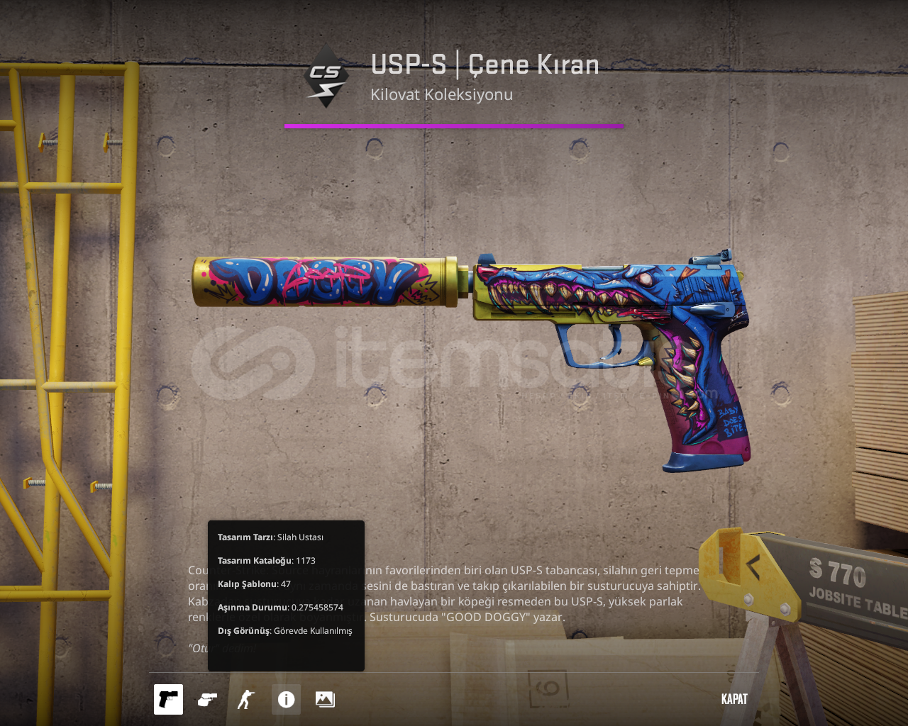 Diğer satıcılar gibi float değeri yazmayıp rastgele aşınmış skinler göndermiyorum :)
