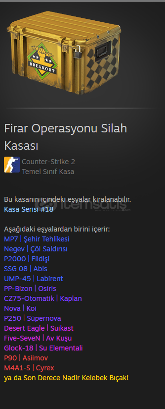 Firar Operasyonu Silah Kasası https://steamcommunity.com/id/Razentr/500 liraya alınıyo steamde bana nakit gelsin diye bu fiyata satıyom