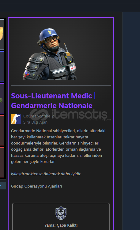 ajan adı: Sous-Lieutenant Medic | Gendarmerie Nationaleüzerinde 5 dolarlık bir yama vardır yama için ekstra bir fiyat eklemesi yapılmadı yama tamamen size bedavaya denk gelmiş olacaktır.