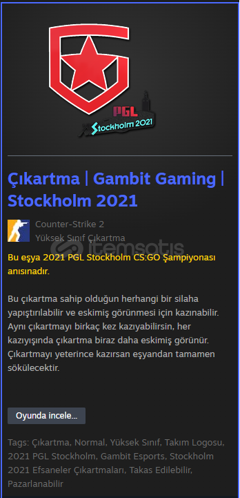 Çıkartma | Gambit Gaming | Stockholm 2021
