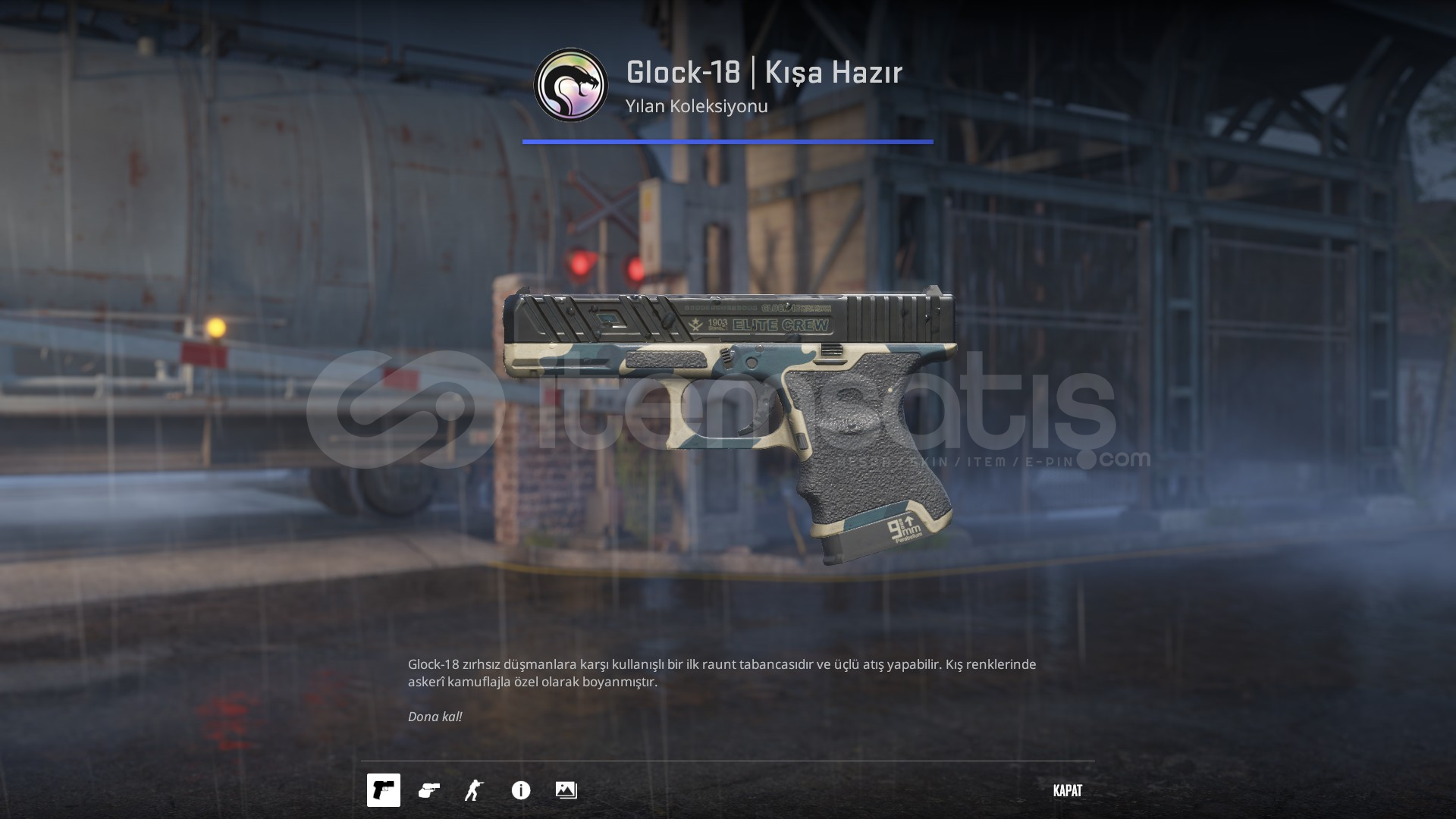 Glock-18 | Kışa HazırSteam hesabınızın envanter gizliliği, herkese açık olmalıdır.Steam hesabınızda trade banı olmamalıdır.Çevrimiçi olmamı beklemeden satın alabilirsiniz.Daha fazla ilan için mağazama göz atabilirsiniz.NOT!:Steam Guard eklediyseniz 15 gün, Steam adınızı değiştirdiyseniz 4 saat banınız olur.