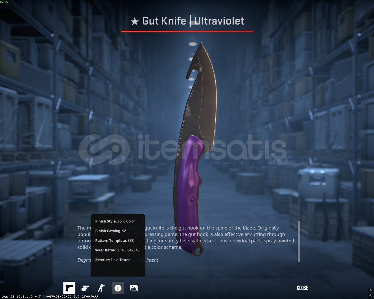 GUT KNIFE ULTRAVIOLET FIELD TESTED 0.1658 HARIKA FLOATLI 0.15 ZATEN MINIMAL WEAR MOSMOR ULTRAVIOLET