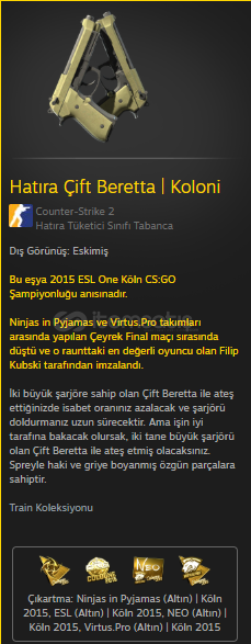 Ninjas in Pyjamas (Altın) | Köln 2015ESL (Altın) | Köln 2015NEO (Altın) | Köln 2015Virtus.Pro (Altın) | Köln 20151 adet yollanacaktır diğer ilanlarıma bakabilirsiniz