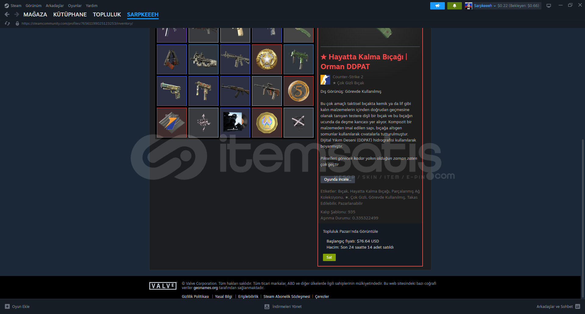 ★ Hayatta Kalma Bıçağı | Orman DDPATBaşlangıç fiyatı: $76.64 USDHacim: Son 24 saatte 14 adet satıldısteam fiyatının altına satıyorum