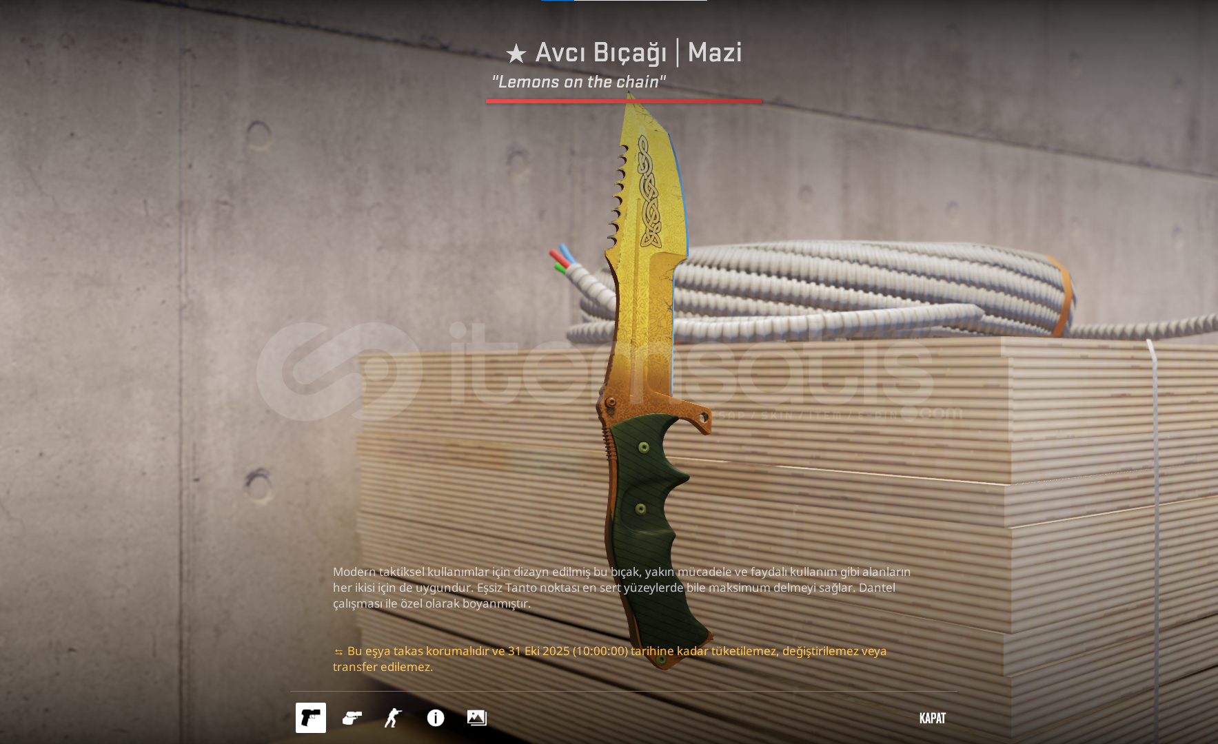 Lore Huntsman Knife (FT)PAZARLIK YOKTUR!!!Beklememek için satın almadan önce MESAJ ATINIZ!!!STEAM VAC BANINIZ OLMAMALI!!STEAM PROFİLİNİZ HERKESE AÇIK OLMALI!!Ben Aktif değilken almayınız!!!