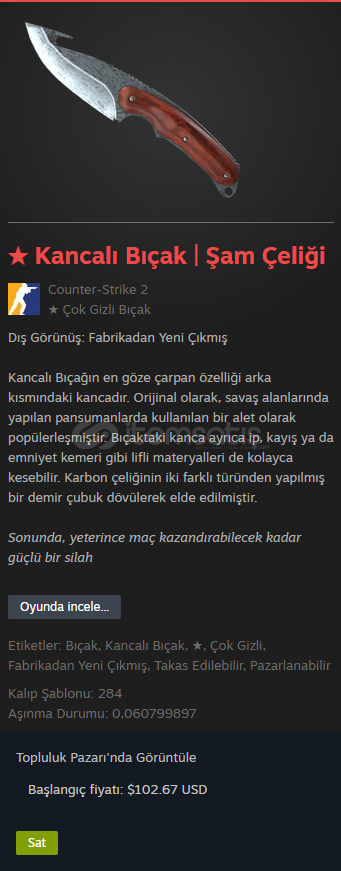 ★ Kancalı Bıçak | Şam Çeliği FN